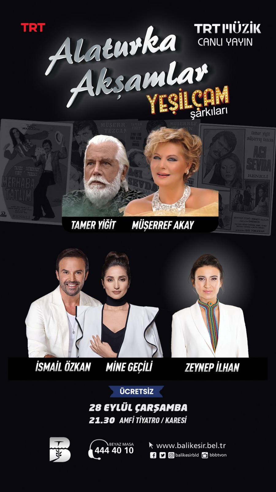 Tamer Yiğit, Müşerref Akay, Mine Geçili, Zeynep İlhan ve İsmail Özkan’ın sahne alacak olduğu TRT Müzik kanalının Alaturka Akşamlar Final programına davetlisiniz.