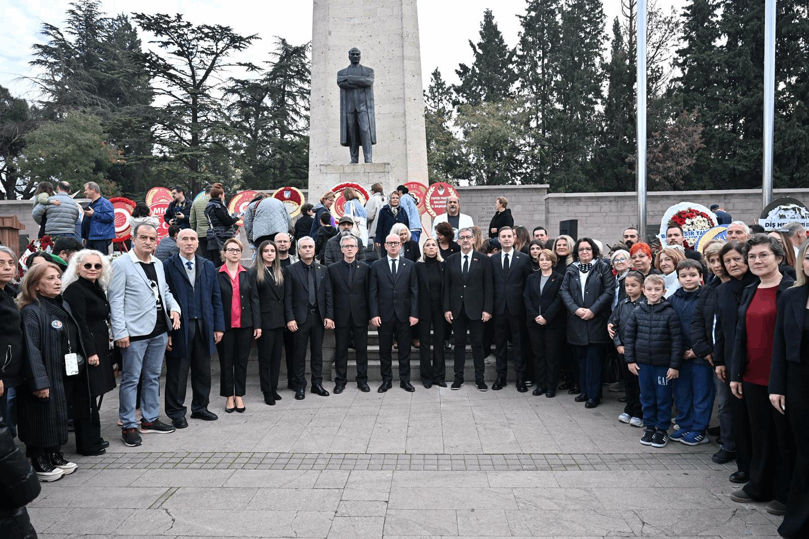 Balıkesir Büyükşehir Belediye Başkanı Ahmet Akın, Cumhuriyet’imizin kurucusu, Milli Mücadele’nin önderi Gazi Mustafa Kemal Atatürk’ün aramızdan ayrılışının 87. Yıl dönümü nedeniyle düzenlenen törende Atatürk Anıtı’na çelenk bıraktı. Törende saat 9’u 5 geçe sirenlerin çalmasıyla hayat durdu, vatandaşlar saygı duruşuna geçti.