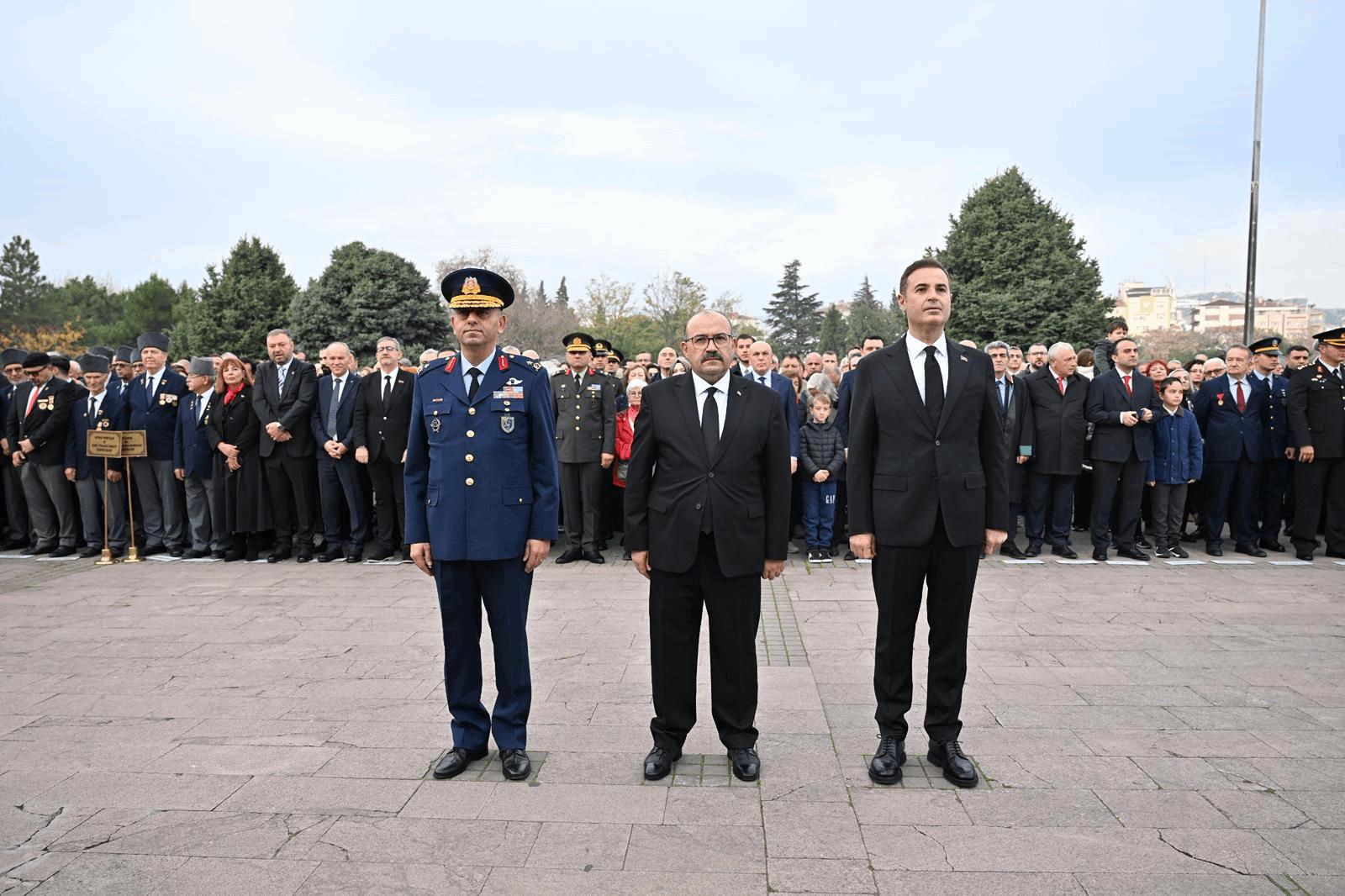 Balıkesir’de 10 Kasım Atatürk’ü Anma Günü etkinlikleri çerçevesinde Atatürk Anıtı önünde tören düzenlendi. Törene, Balıkesir Büyükşehir Belediye Başkanı Ahmet Akın’ın yanı sıra Balıkesir Valisi İsmail Ustaoğlu, Garnizon Komutanı Hv. Plt. Tuğg. Gökhan Gürakar, CHP Balıkesir Milletvekili Serkan Sarı, AK Parti Balıkesir Milletvekili İsmail Ok, Vali Yardımcıları, ilçe belediye başkanları, siyasi partilerin il başkanları, protokol üyeleri, öğrenciler ve çok sayıda vatandaş katıldı. Balıkesir Valiliği, Garnizon Komutanlığı ve Büyükşehir Belediye Başkanlığı çelenkleri sırasıyla Atatürk Anıtı’na konuldu.