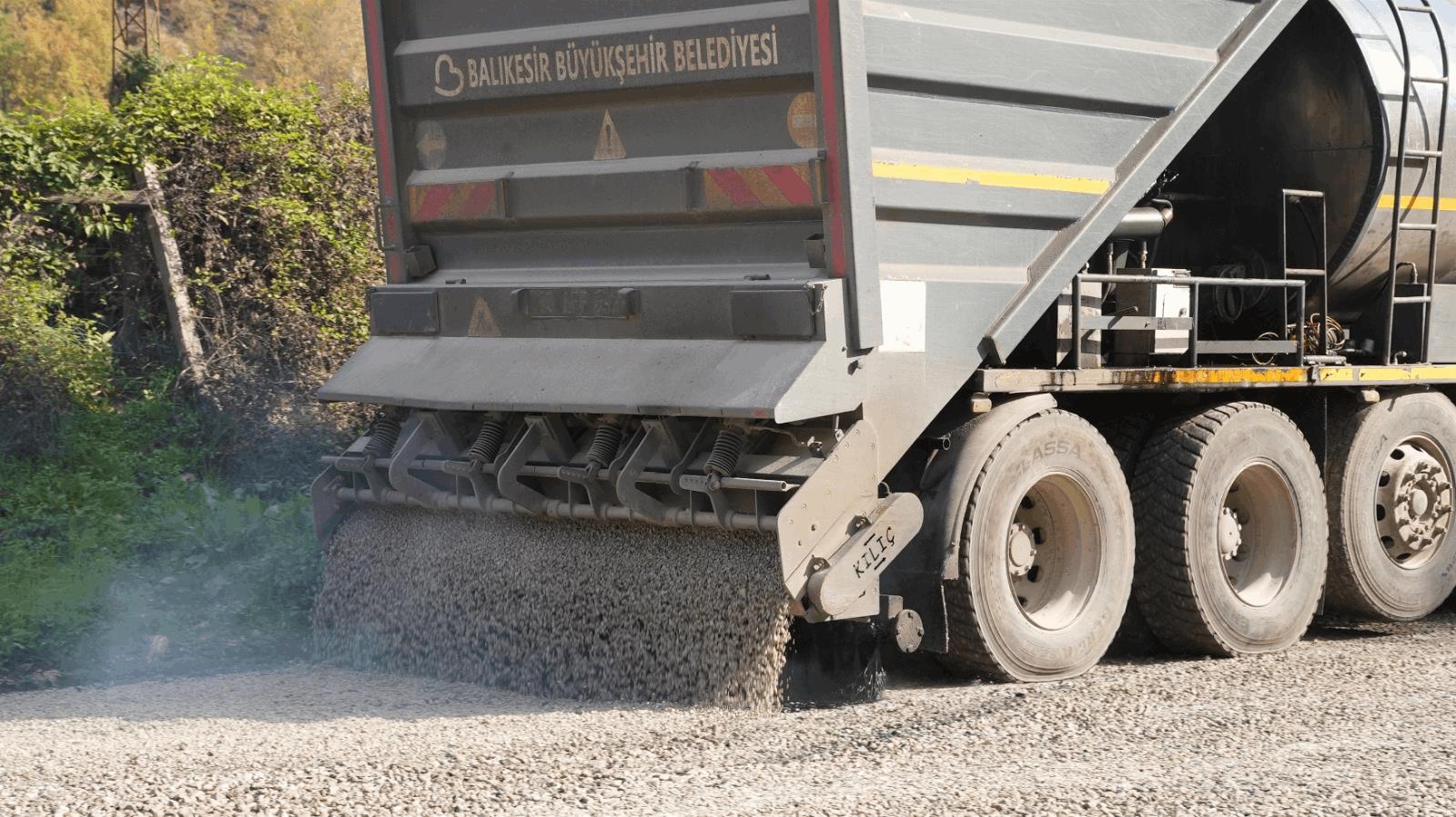 Kentin dört bir yanında vatandaşlardan gelen her talebi anında çözüme kavuşturan Balıkesir Büyükşehir Belediye Başkanı Ahmet Akın, Balya’da Koyuneri Mahallesi ile Gönen’in Çatak ve Sebepli mahallelerinde grup yolunun yapılması için vatandaşlardan gelen talep üzerine ekipleri harekete geçirdi. Akın’ın talimatıyla grup yolunda sathi kaplama çalışmasına başlayan Balıkesir Büyükşehir Belediyesi Yol Yapım, Bakım ve Onarım Dairesi Başkanlığı ekipleri, 6 metre genişliğinde yaklaşık 5,5 kilometre yolda; serme sulama sıkıştırma ve sathi kaplama çalışması gerçekleştirdi. Koyuneri, Çatak ve Sebepli mahalleleri arasında serme sulama sıkıştırma çalışması tamamlandı. Ekipler, Koyuneri ve Çatak mahalleleri arasında sathi kaplama çalışmasını 4 kombi araç, 1 silindir, 1 yükleyici 4 kamyon ve 15 personel ile 4 gün içinde tamamladı. Bölge sakinleri yolun yeni halinin çok güzel olduğunu söylerken destekleri için Başkan Akın’a teşekkür ettiler.