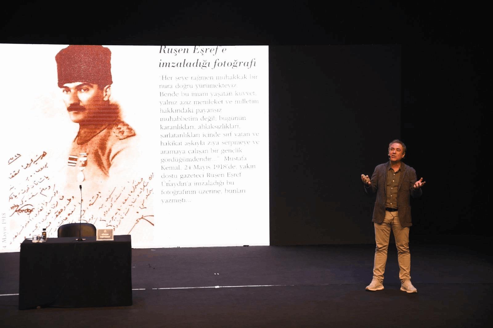Atatürk’ün 24 Mayıs 1918’de gazeteci arkadaşı Ruşen Eşref Bey’e imzalayıp verdiği fotoğrafın altına yazdıklarını paylaşan Sinan Meydan “‘Her şeye rağmen muhakkat bir nura doğru yürümekteyiz, bende bu imanı yaşatan kuvvet, yalnız aziz memleket ve milletim hakkındaki sınırsız muhabbetim değil. Bu günün karanlıkları, ahlaksızlıkları, şarlatanlıkları içinde sırf vatan ve hakikat aşkıyla ışık serpen ve arayan bir gençlik gördüğümdendir.’ İşte, İstiklal Harbi’nin ve cumhuriyetin arkasındaki inanç budur. İstiklal Harbi’ni nasıl kazandık, Cumhuriyeti nasıl kurduk diye soruyorlar bana İşte, bu inançla kurduk. Atatürk’ün bu inancı ve umuduyla kurduk. Umudu kaybetmemek çok önemli, bunu bize Mustafa Kemal Atatürk öğretti. Umudumuzu asla kaybetmeyeceğiz.” şeklinde konuştu.